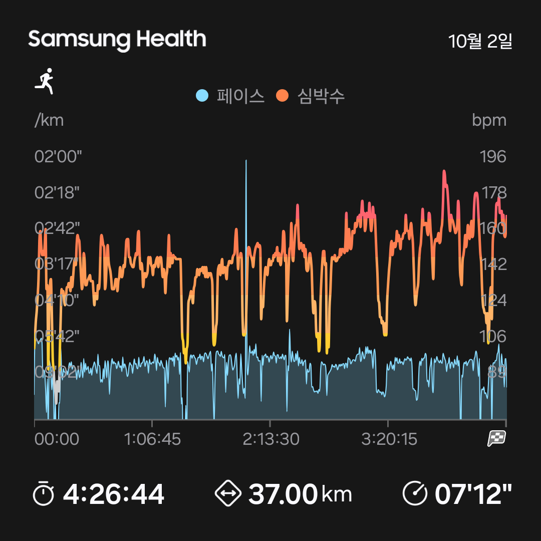오늘 테이퍼링 전 마지막 장거리로 37km 뛰었는데 ㄹㅇ 디질뻔;; 풀코스 어떻게든 완주는 할수있을것 같은데 기록은 잘 모르겠습니다. 4:15 정도 생각해야하나... 약간 아쉽긴하지만 그래도 완주를 한다는게 중요한거니까 !!