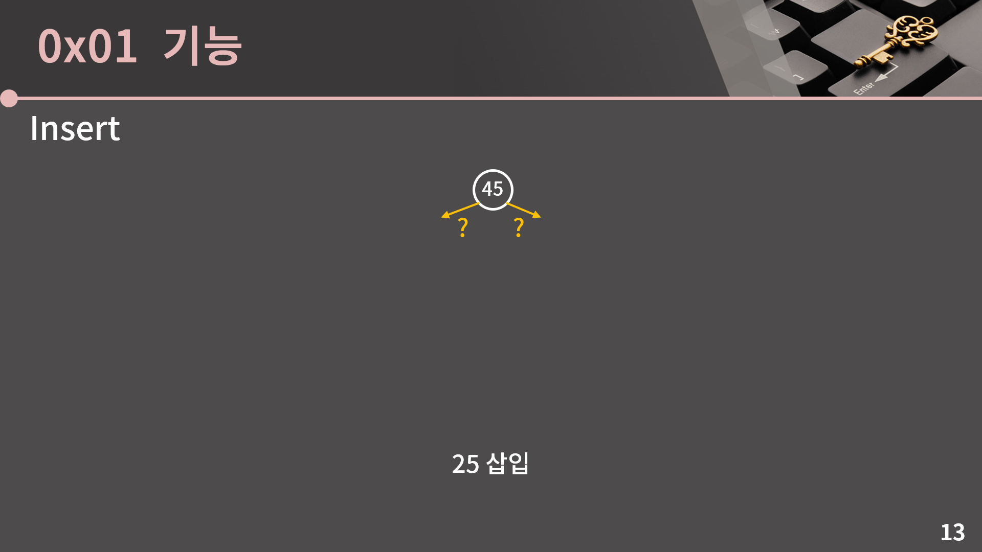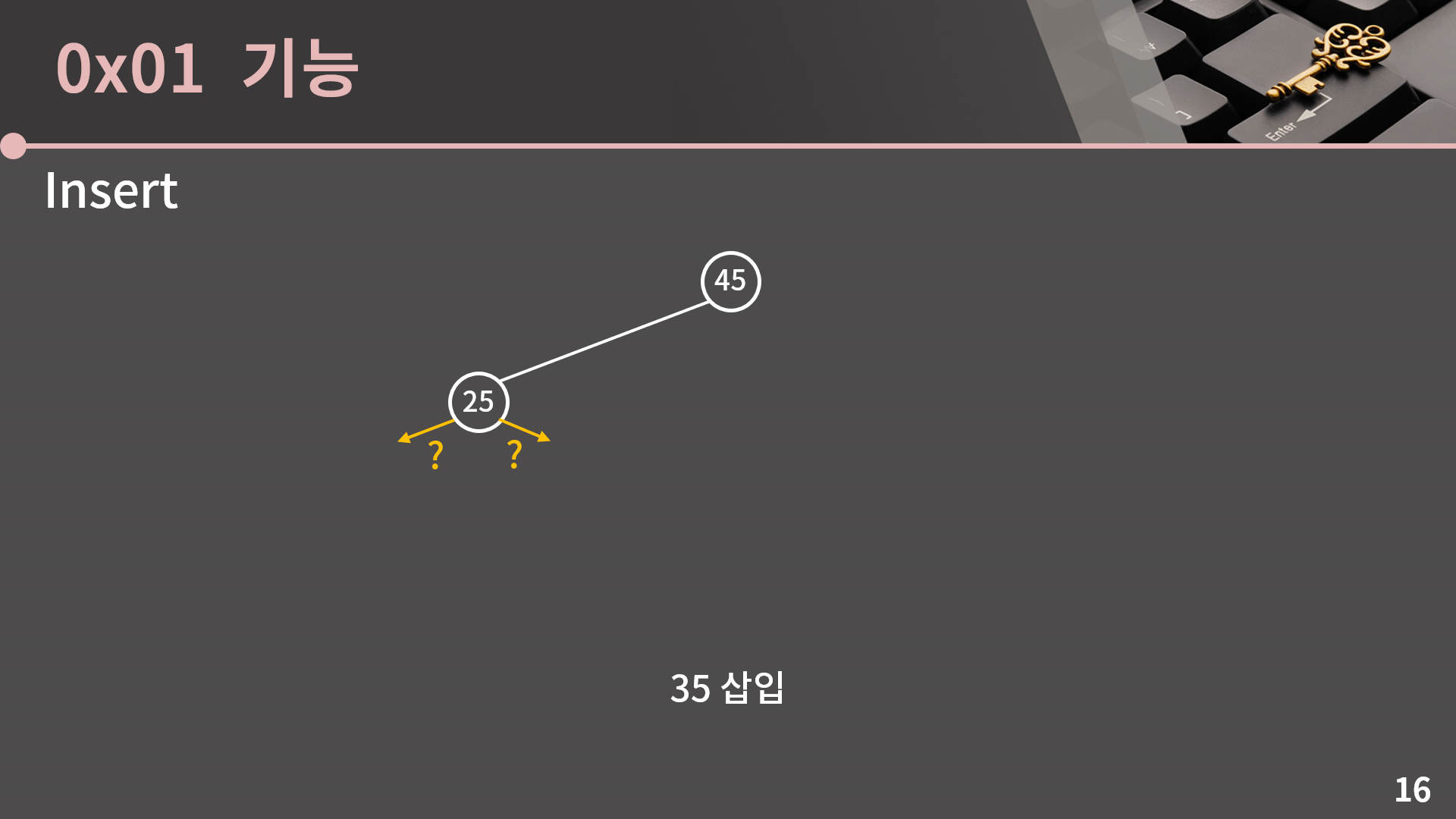 다음으로 25를 삽입할건데 25는 45를 기준으로 왼쪽에 있을까요? 오른쪽에 있을까요?