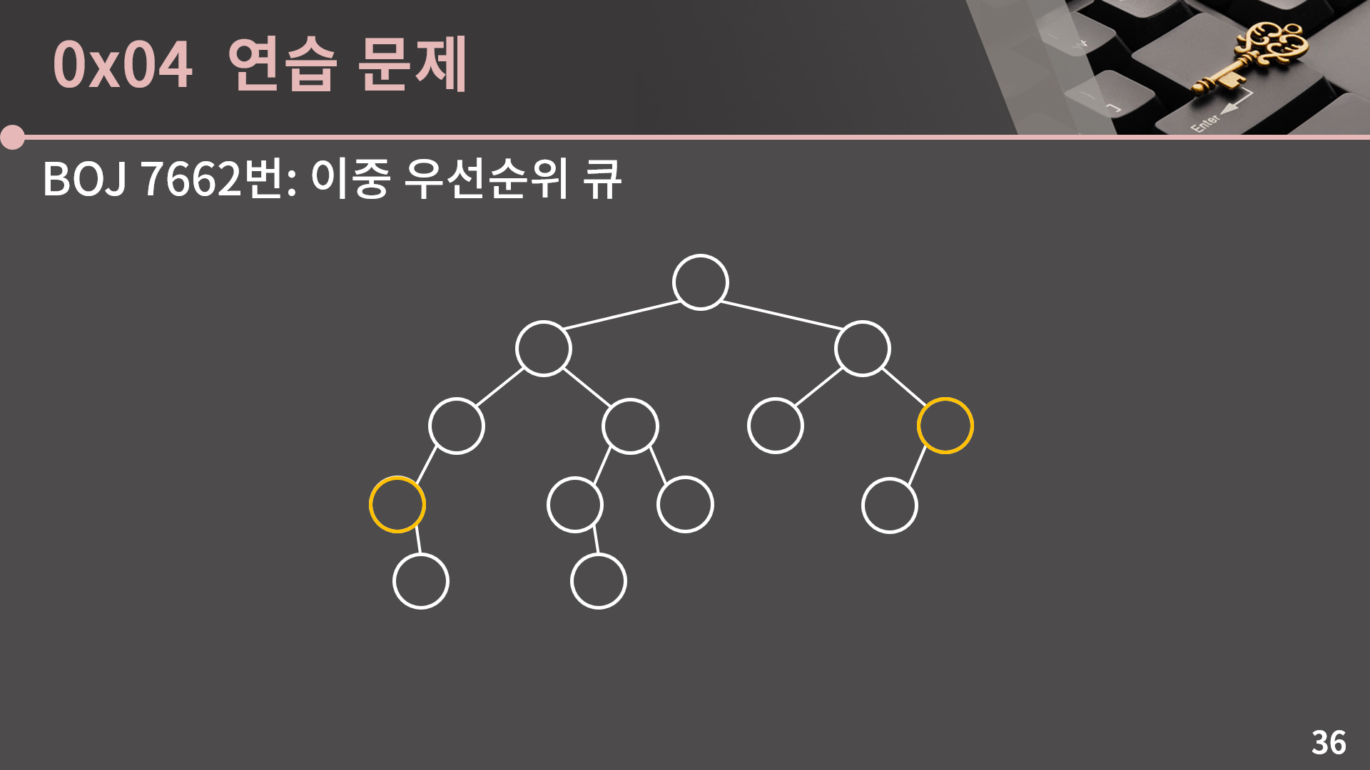 이렇게 이진 검색 트리 강의도 끝이 났습니다. 아주 간단하게 요약을 하자면 이진 검색 트리에서는 원소가 크기 순으로 저장되어 있고 삽입, 삭제, 검색 등이 전부 O(lg N)에 동작합니다. 그렇기 때문에 일단 N이 커서 O(N^2)은 통과가 안될 상황이고 원소의 대소 관계가 필요한데 삽입 혹은 삭제가 빈번하다면 이진 검색 트리가 유용하게 쓰일 수 있습니다. 꼭 대소 관계가 아니더라도 그냥 key로 value를 빠르게 찾거나, 원소의 삽입/검색/삭제만 빠르게 처리를 해주어야 할 경우라고 해도 unordered_set/unordered_map을 쓰듯이 set/map을 편하게 쓸 수 있습니다. 그럼 강의를 여기서 마치겠습니다.