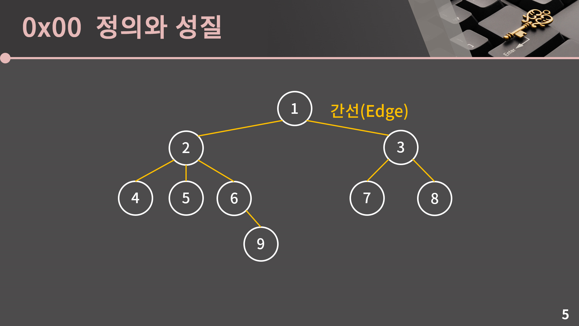 다음으로 정점을 연결하는 선은 간선입니다.