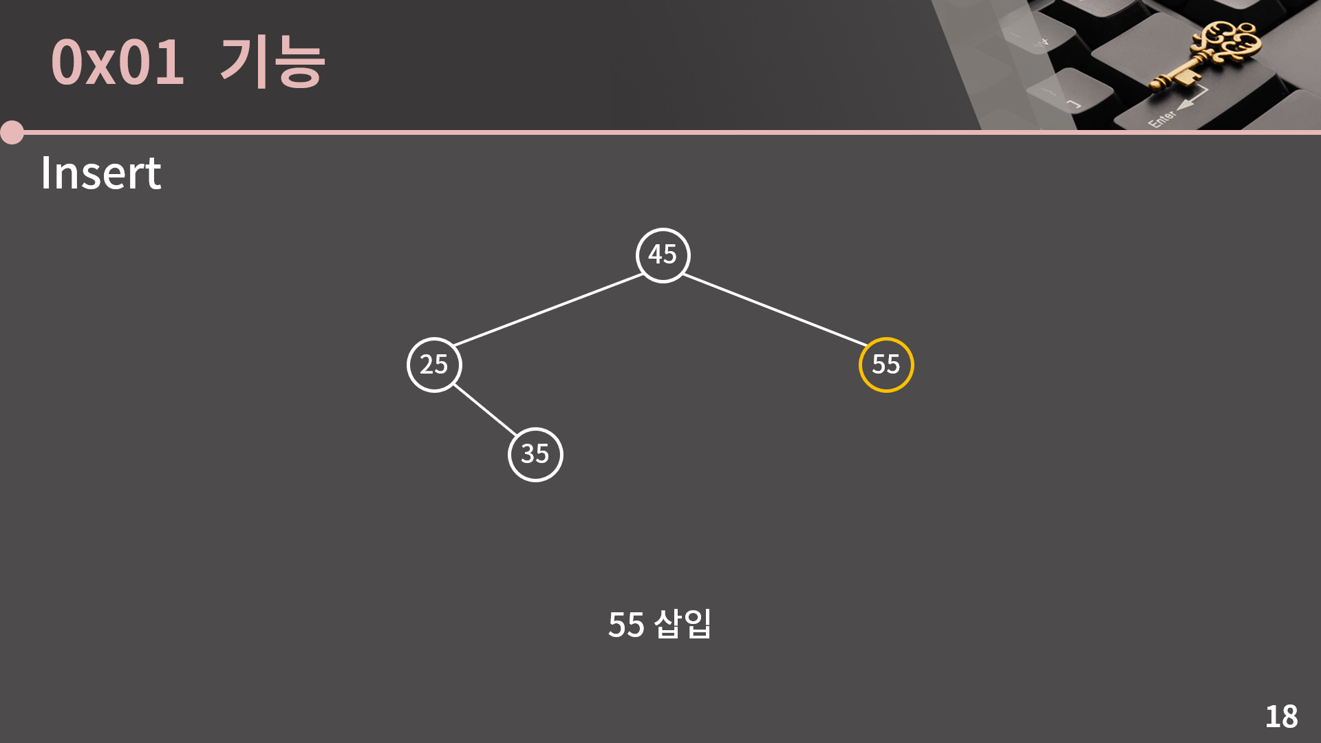 55를 삽입해보면 45의 오른쪽으로 가게 됩니다.