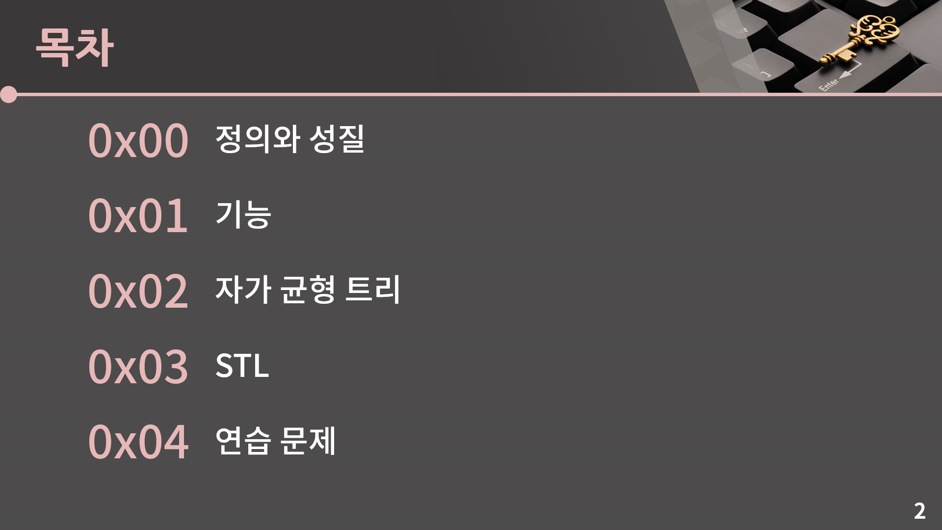 목차를 보고 혹시 뭔가 이상한 점을 눈치챈 분이 계실지 모르겠습니다. 이상한 점이라기보다는 이전 단원과 다른 점이라고 볼 수도 있겠는데, 구현이 아예 빠져 있습니다. 강의에서 구현의 필요성을 늘 강조했었지만 이진 검색 트리는 구현을 안할 예정입니다. 왜 안하냐면 첫 번째로 저희는 트리를 아직 배우지 않아서 설령 이진 검색 트리를 배워도 구현을 아직 할 수가 없습니다. 두 번째 이유는 사실 이게 구현을 다루지 않는 가장 큰 이유인데 설령 어찌저찌 이진 검색 트리를 구현했다고 쳐도 저기 챕터에 보이는 자가 균형 트리라는걸 적용하지 않으면 시간복잡도가 안 좋아져서 써먹을 수가 없습니다. 그렇다고 자가 균형 트리까지 구현을 하자고 하니 자가 균형 트리는 난이도가 헬이라 현실적으로 방법과 구현을 알려드린다 해도 그냥 관상용이지 실제로 문제를 풀 때 저거를 기억하고 있다가 밑바닥에서 구현하는건 그냥 불가능하다고 보시면 됩니다. 그래서 어차피 써먹지도 못할거 구현은 다 뺐습니다.