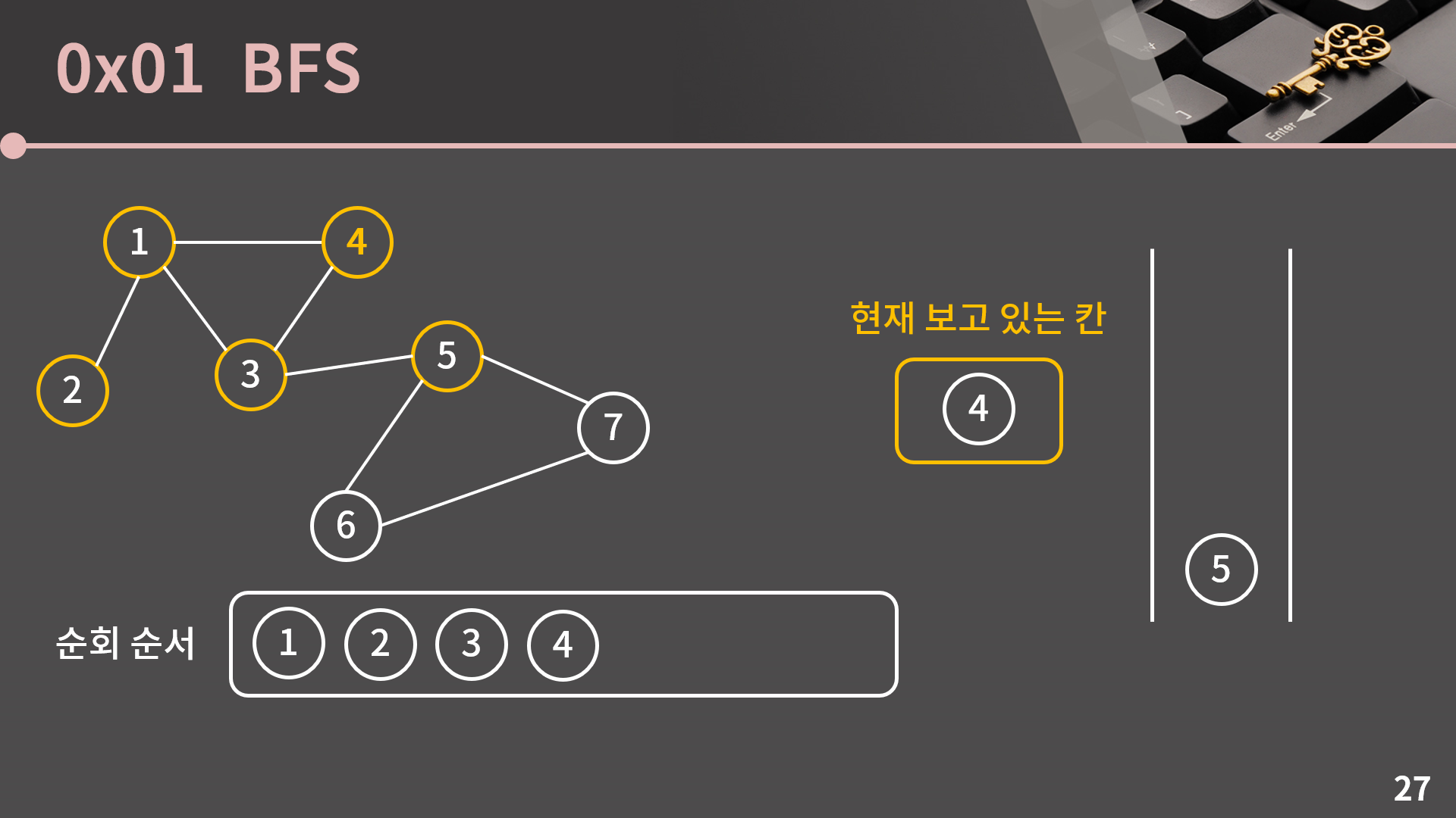 이제 BFS를 다룰 시간입니다. 아마 여기까지 오신 분들이라면 0x09강 - BFS 단원에 있던 수많은 BFS 문제들을 풀면서 BFS에 좀 익숙하실 것 같습니다. 그리고 BFS 단원에서 BFS를 어떻게 설명했는지 그대로 가져와보겠습니다. "BFS는 다차원 배열에서 각 칸을 방문할 때 너비를 우선으로 방문하는 알고리즘입니다. 원래 BFS는 그래프라는 자료구조에서 모든 노드를 방문하기 위한 알고리즘이고, BFS를 정확하게 이해하려면 그래프 자료구조에 대한 이해가 선행되어야 하는데 아직은 그래프를 안배워서 더 설명은 힘들고 실제 동작을 보면서 이해해봅시다" 이렇게 설명을 했습니다. 그리고 지금은 그래프를 배웠으니 제대로 설명을 할 수가 있습니다. 사실 순서로 보면 그래프를 배운 후에 BFS를 배우는게 맞긴 한데 다차원 배열에서 BFS를 하는 문제가 워낙 잘 나와서 어쩔수없이 그래프 개념을 배제한 상태로 BFS를 앞에서 다룬 후에 지금에야 제대로 소개를 드릴 수 있게 됐습니다.