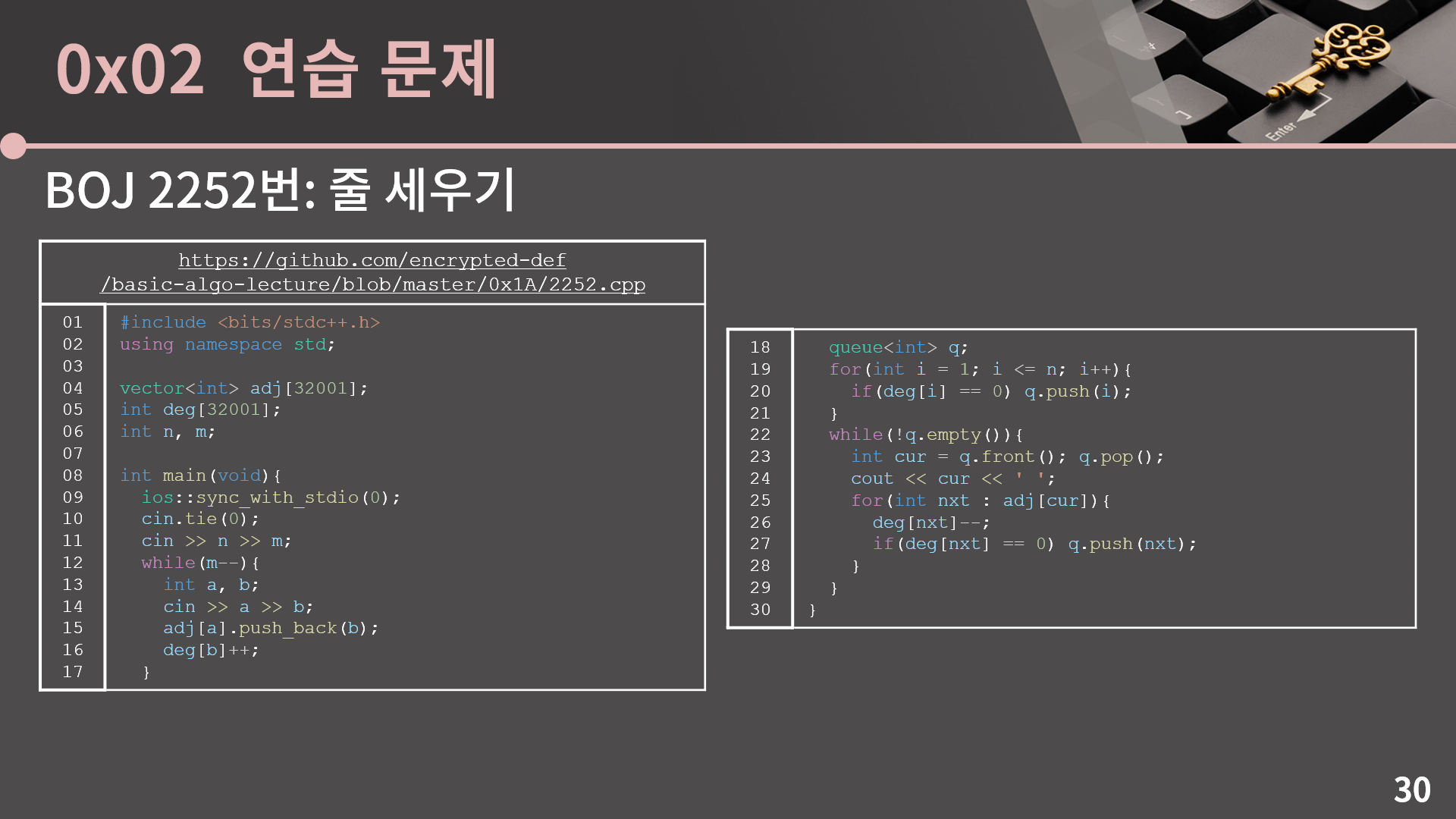 위상 정렬이 무엇인지도 소개해드릴거고 구현과 연습 문제도 다룰 예정입니다.