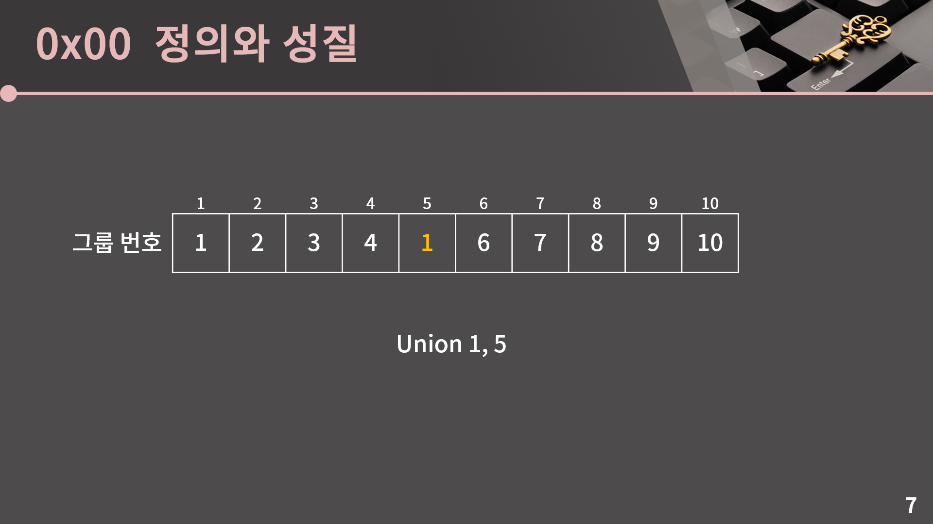 이렇게 Union을 살펴보았고 어떻게 동작하는지는 충분히 이해가 됐을거라고 생각하는데, 실제 구현 방식이랑 시간복잡도는 Find 연산까지 보고난 후에 같이 얘기를 나눠보겠습니다.