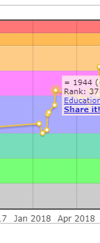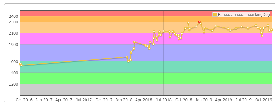 2019년 한 해 동안 열심히 하면 레드에 도달할 수 있을 줄 알았는데 지금까지도 오렌지에서 맴돌고 있습니다. 사실 중간에는 강등도 한번 당했어서 더 충격이었습니다. 분명 작년과 비교해서 아는 것은 많아졌는데 정작 레이팅은 계속 제자리여서 좀 답답했습니다.