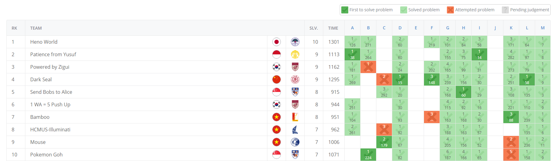 2019 ICPC 다낭 리저널에 참가했고 아쉽게도 6등으로 끝나 월드파이널 진출에 실패했습니다. 학과의 다른 팀인 Powered by Zigui팀은 3등을 기록했고 다낭 리저널이 가장 규모가 큰 리저널이기 때문에 큰 이변이 없으면 월드파이널에 진출할 수 있을 것으로 보입니다. 사적으로 친하기도 하고, 또 선의의 경쟁을 하며 서로에게 자극이 되는 좋은 팀이었습니다. 이미 같이 있는 동안 축하를 많이 해주었지만 이 글을 통해 다시 한 번 축하드립니다 ^___^