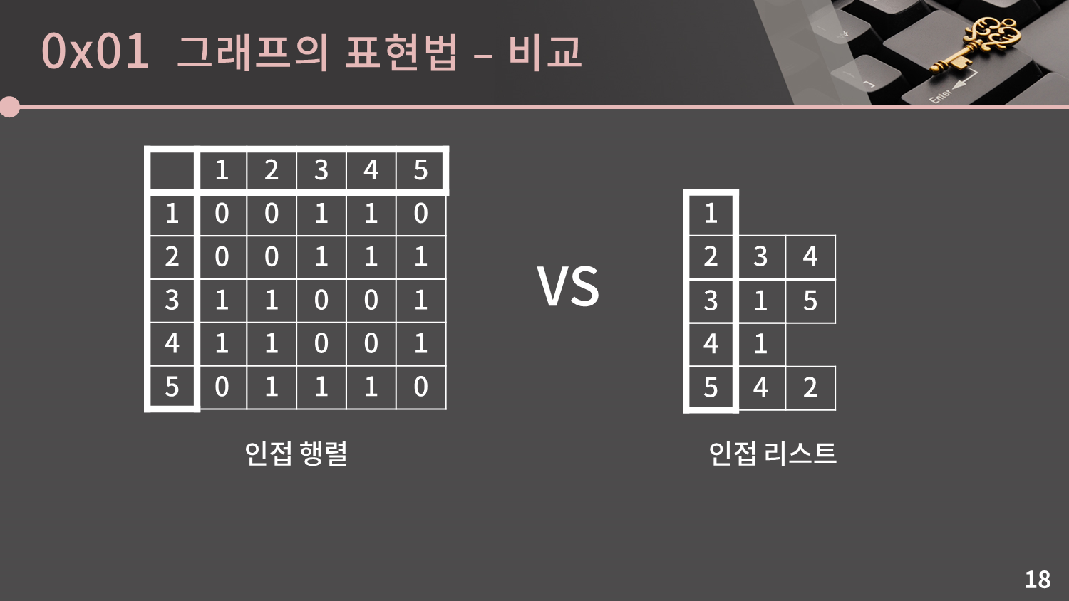 특이하게 입력 자체가 인접 행렬 느낌으로 주어지거나 $V$가 많이 작아 구현의 편의를 위해 인접 행렬로 푸는 경우가 가끔씩 있지만 기본적으로는 인접 리스트만 다룰 수 있어도 코딩테스트에서 불편함이 없습니다.