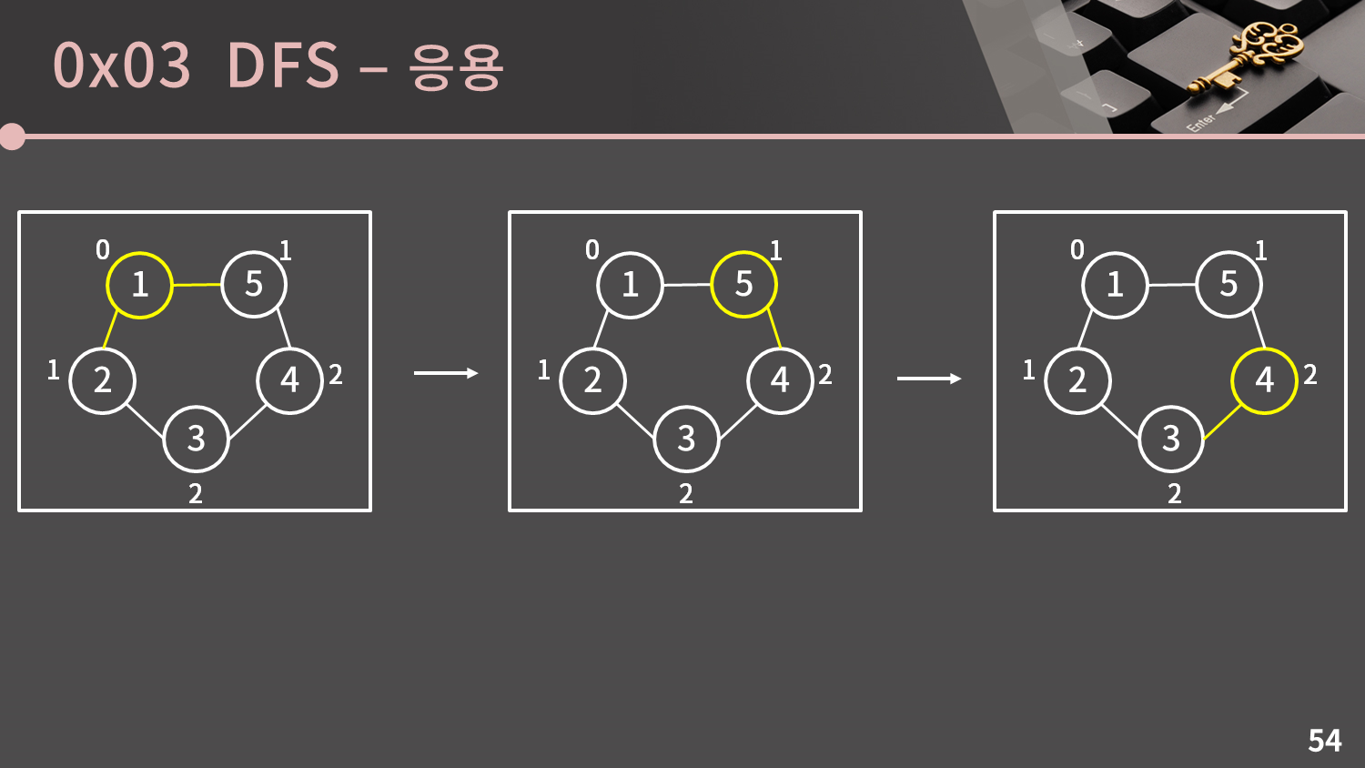 2차원 배열의 DFS와 마찬가지로 그래프의 DFS는 시작점으로부터의 거리를 알아낼 때 사용할 수 없습니다.