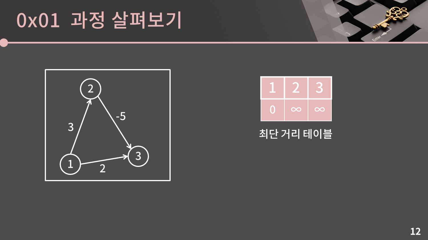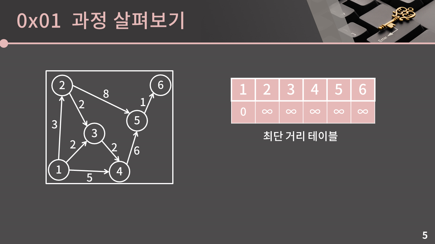 일단 최단 거리 테이블은 처음처럼 0과 ∞으로 채워두겠습니다.