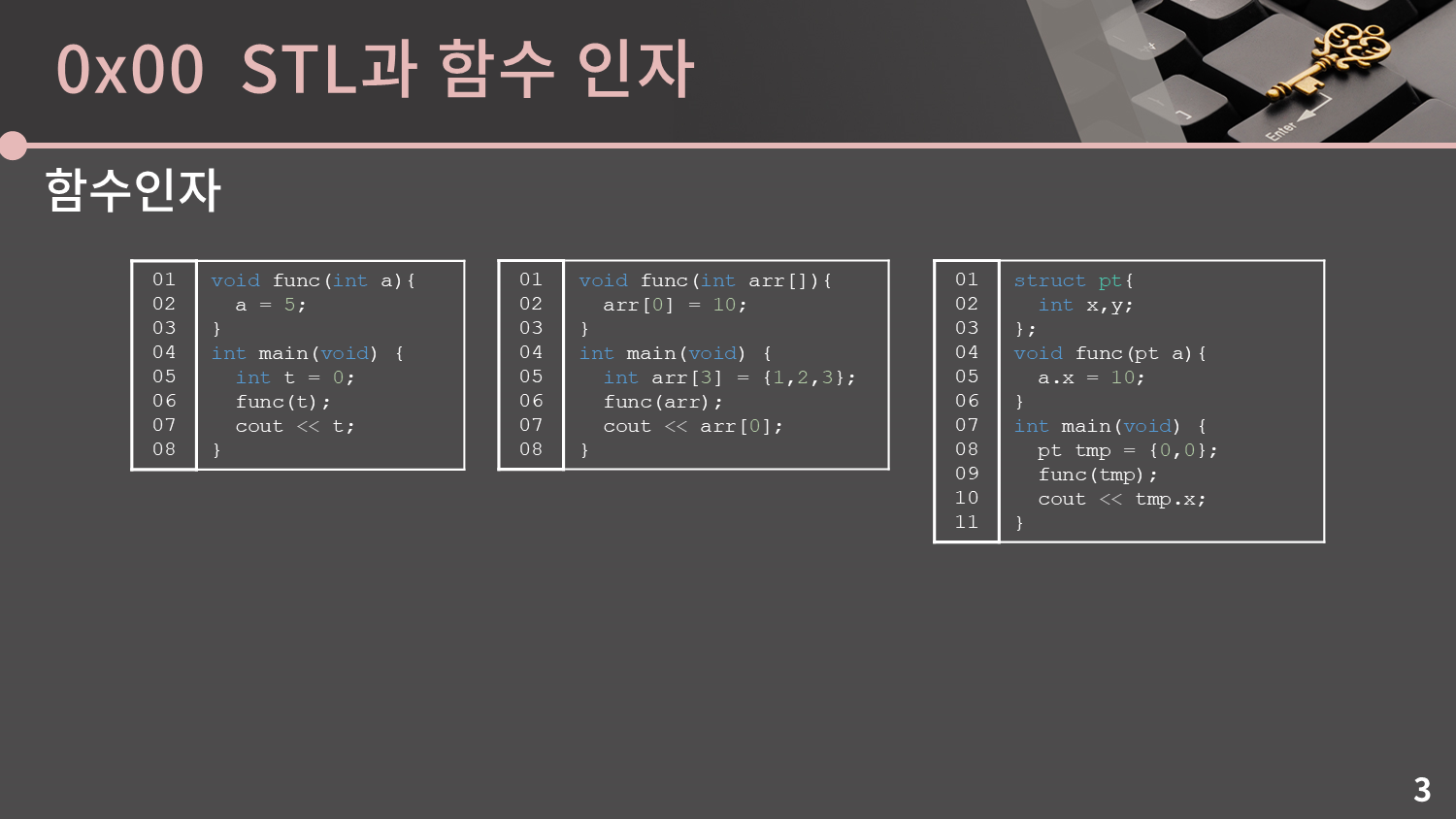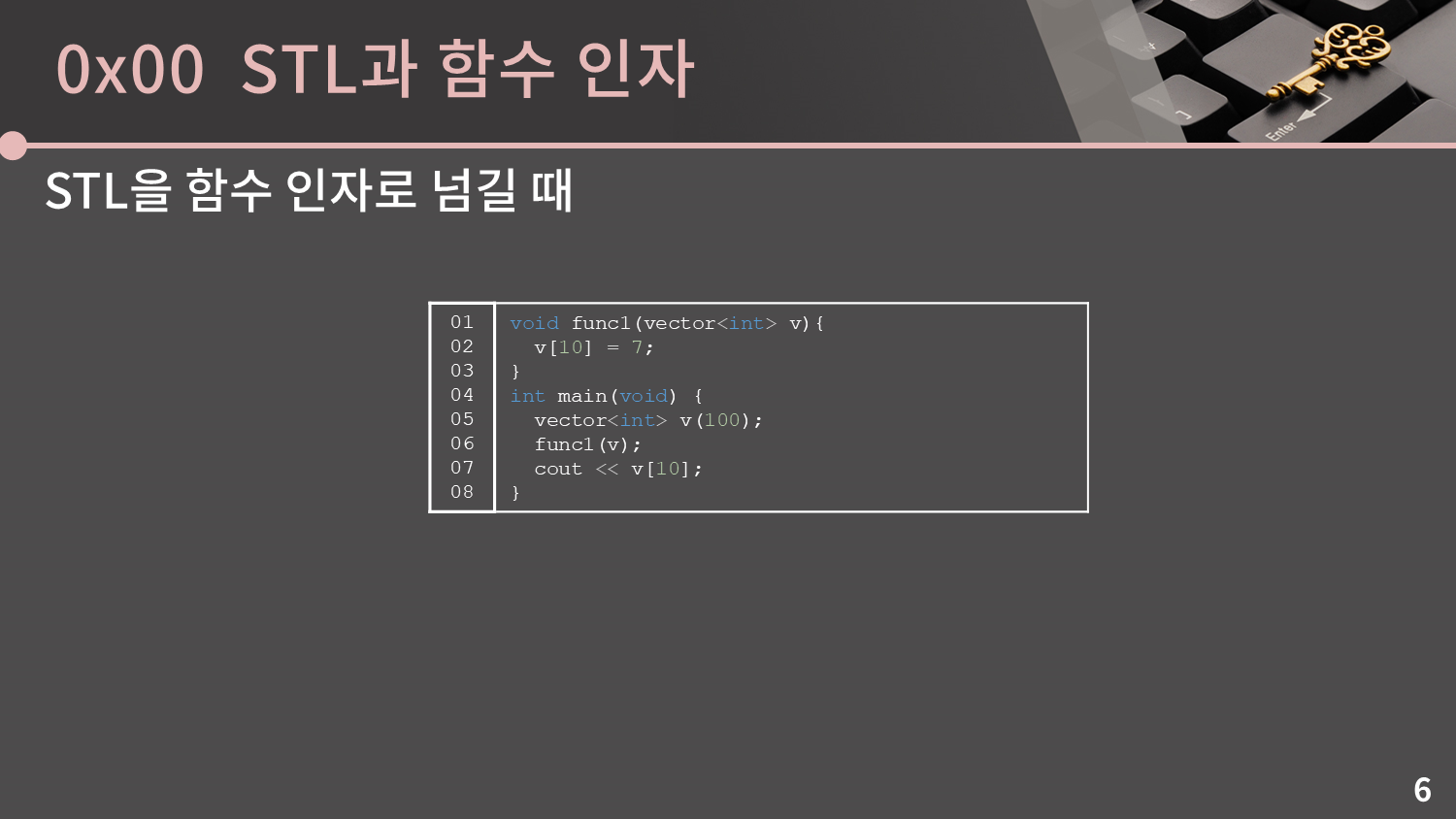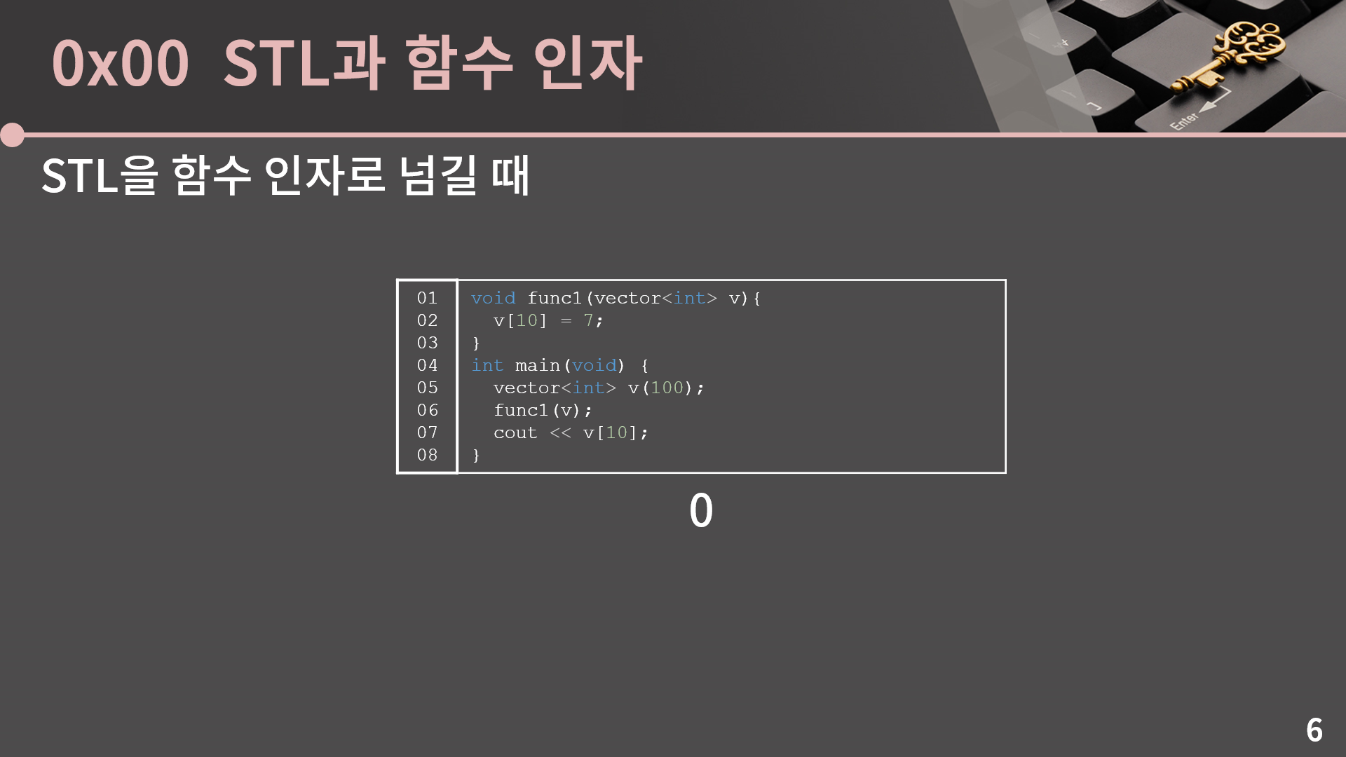 자 이제 우리가 살펴볼 것은 STL을 함수 인자로 넘길 때 어떤 일이 생기는지에 대한 것입니다. 언젠가 코딩테스트 특강을 할 때 이걸 질문하고 정답이 무엇인지 물었는데, 절반 넘게 오답을 말씀하셨습니다.