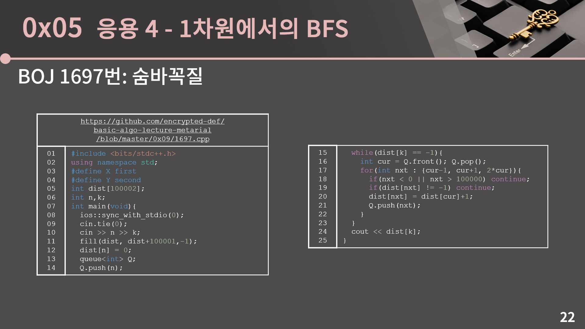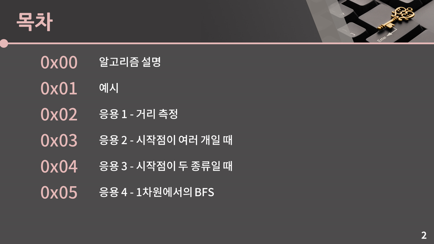 0x05까지 있으니 목차를 보시면 뭐가 되게 많죠? 사실 리뉴얼 하기 전의 강의에서는 기본적인 BFS만 다뤘는데 늘 내용을 보충하고 싶었습니다. 그래서 리뉴얼한 강의에서는 BFS의 다양한 응용 내지는 유형들을 전부 짚고 넘어갈 것입니다.