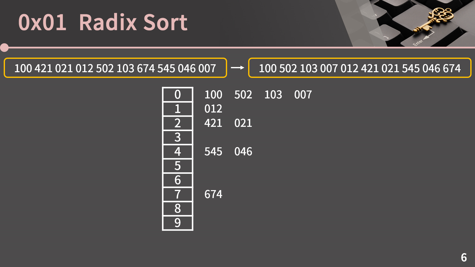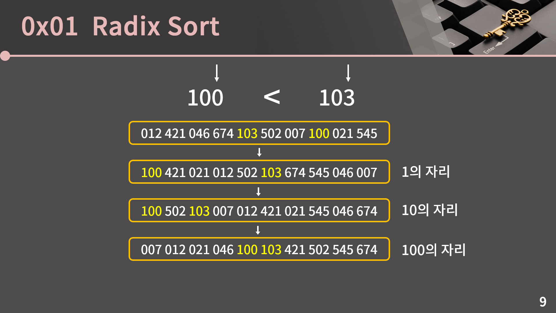 그냥 리스트를 가지고 먼저 1의 자리 순으로 재배열하고, 그 다음 10의 자리 순으로 재배열하고, 마지막으로 100의 자리 순으로 재배열했더니 정렬이 됐습니다. 왜 이렇게 정렬이 가능한지를 짚고 넘어가보겠습니다.
