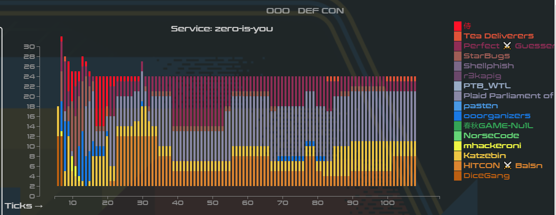 zero-is-you 문제는 Day 1이 종료될 때 같이 retire됐고, 어째 A/D쪽 문제에서는 딱히 제 능력으로 할 수 있는게 없었습니다. 특히 작년에는 문제가 되게 다양했던 것 같았는데 이번에는 A/D 7문제 중에서 5문제가 ooows라는 이름의, VM을 가지고 뭔가 잘 이해가 안가는 무언가를 하는 문제였어서 더욱 좀 방향성을 잃었습니다.