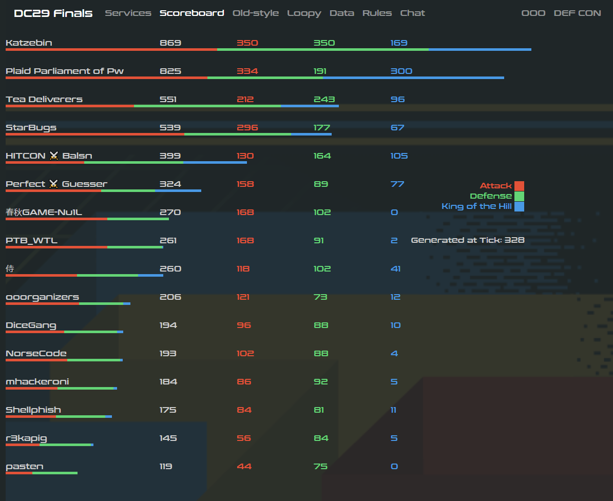 작년에는 코로나로 인해 데프콘이 완전하게 온라인으로 진행되었고, 올해에는 오프라인 행사를 진행하지만 굳이 행사장에 오지 않고 온라인으로 참여해도 상관이 없었습니다. 실제로 16개의 팀 중에 현장에 참여하지 않은 팀들도 여럿 있었습니다.