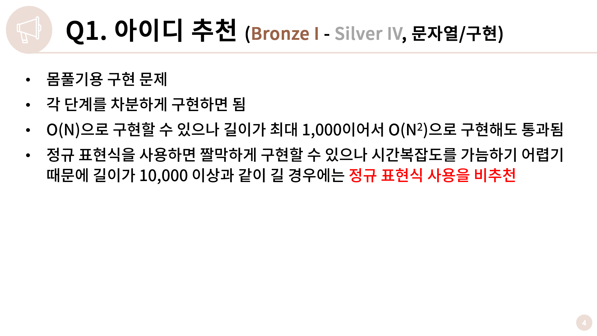 1번 문제 답게 곧이곧대로 구현하면 되는 쉬운 문제입니다. N이 1000으로 작아 2단계를 O(N2)으로 구현해도 아무 문제가 없습니다만 O(N)으로 구현할 수 있습니다. 이 부분을 짚고 넘어가면 좋을 것 같아 다음 슬라이드에서 별도로 설명을 드리겠습니다.