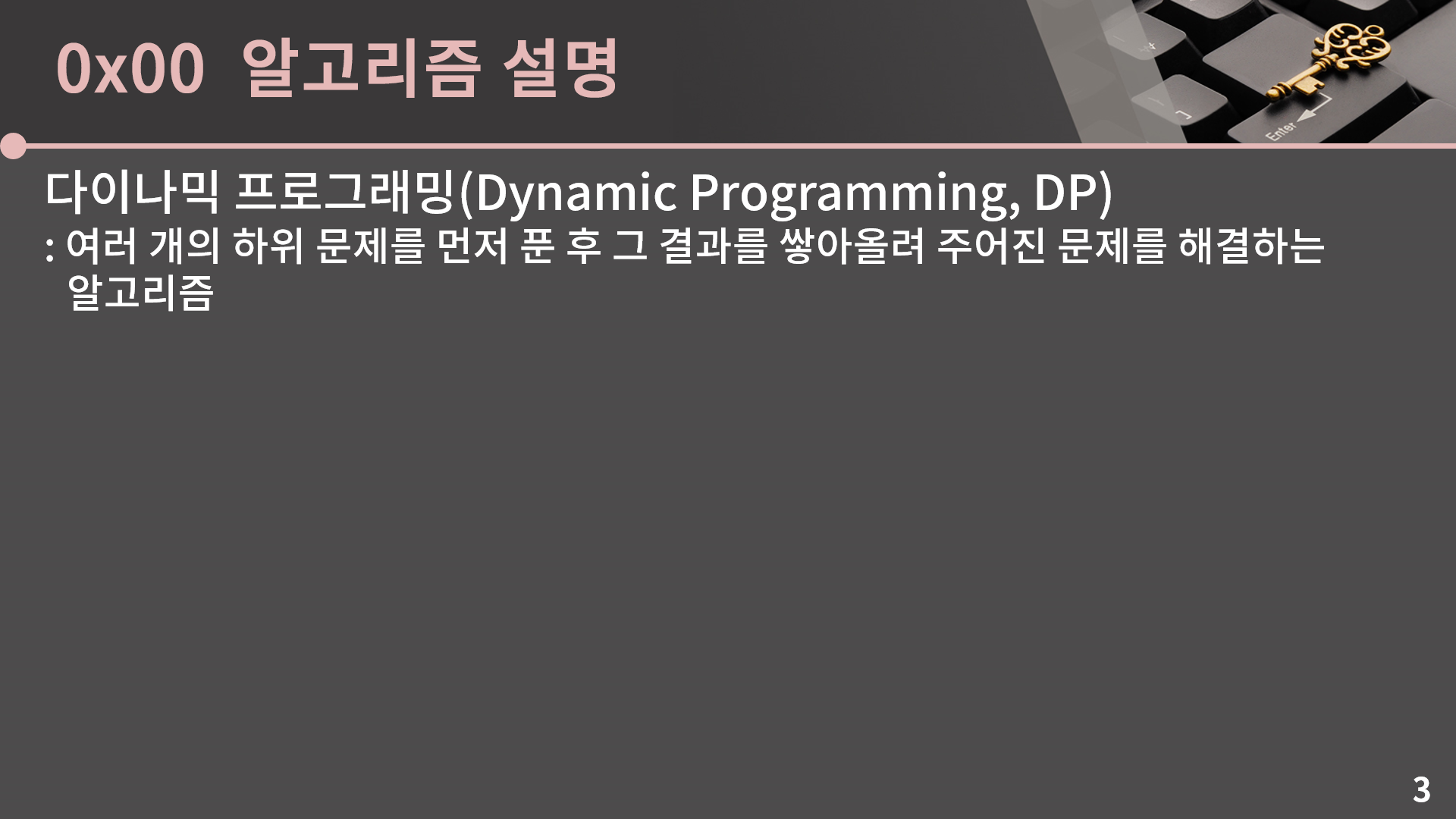 안녕하세요, 이번 시간에는 다이나믹 프로그래밍을 다룹니다. 직전까지 막 재귀, 백트래킹, 정렬 이런 것들로 되게 고통받으셨을텐데 오늘껀 개념도 그렇게 어렵지 않고 구현 난이도도 낮아서 많이 수월합니다.