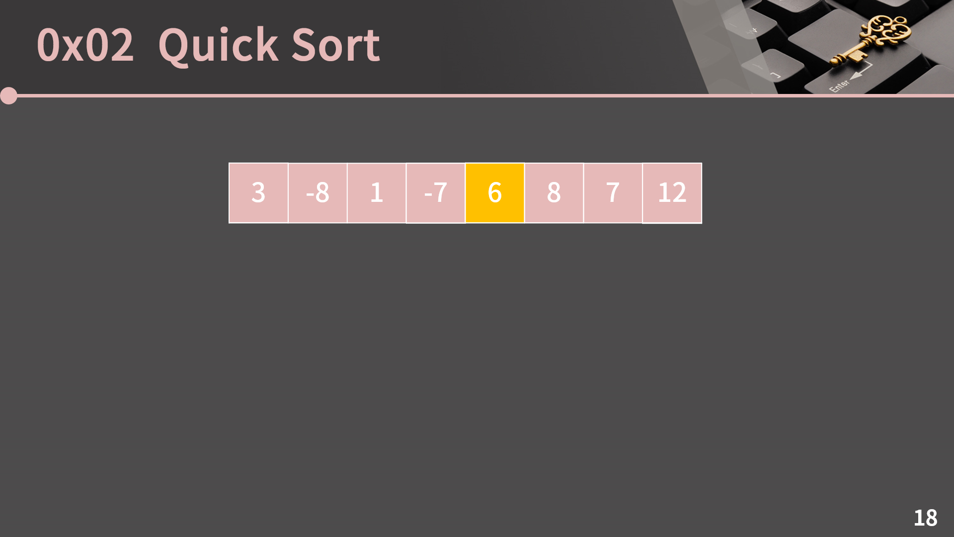 그럼 지금 pivot보다 큰 12가 왼쪽에 있고 pivot보다 작은 -7은 정작 오른쪽에 있는게 말이 안됩니다. 그렇기 때문에 둘의 자리를 바꿉니다.
