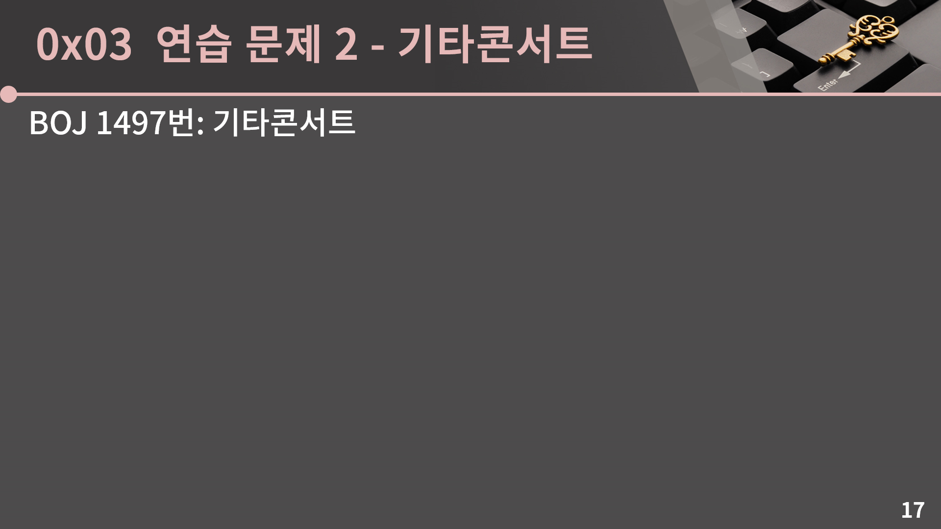 네 이번시간에는 이렇게 비트마스킹을 같이 살펴봤습니다. 비트 연산자에 익숙하다는 가정 하에 비트마스킹은 메모리와 성능 모두에 이득을 줄 수 있어서 구현 기법 중 하나로 익혀두면 분명 도움이 되는 순간이 있을 것입니다. 다만 보통 비트마스킹을 꼭 써야만 시간 혹은 메모리 제한을 맞출 수 있는 경우는 잘 없어서 나는 도저히 이 비트 연산자들이 낯설고 정이 안간다라고 하면 뭐 굳이 안하셔도 상관은 없습니다. 강의를 만든 제 입장에서는 아쉽긴 하지만. 본인이 종사하고자 하는 분야가 로우 레벨 쪽이면 꼭 비트미스킹이 아니더라도 비트 연산자를 볼 일이 많을거라 이번 기회에 겸사겸사 비트 연산자와 친해져보시고, 나는 로우 레벨은 아니다 하면 그래도 이게 그렇게 막 어려운건 아니니까 한 번 익혀보시면 좋겠지만 도저히 비트 연산자를 쓰기 싫다라고 하면 그냥 시뮬레이션 단원 느낌으로 문제들만 가볍게 한 번 풀어보시고 넘어가셔도 괜찮습니다. 그럼 고생 많으셨습니다. 안녕~