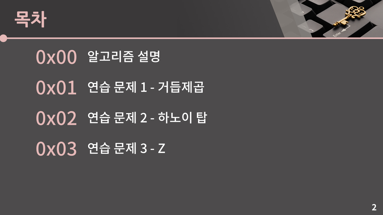 오늘 소개해드릴 내용이 전부 끝났습니다. 재귀가 익숙하지 않았다면 까다로웠을텐데 다음 단원에서 배울 백트래킹을 잘 해내기 위해서라도 재귀를 능숙하게 다룰 수 있어야 합니다. 문제집에 있는 문제들이 쉽지 않겠지만 함수의 정의, base condition, 재귀 식을 잘 생각해서 풀어보시길 추천드립니다. 설령 풀이를 보고 푸는 한이 있다고 하더라도 더 이상 재귀가 두렵지 않을 때 까지 문제들을 풀고 나서 백트래킹을 듣는게 좋아보입니다.