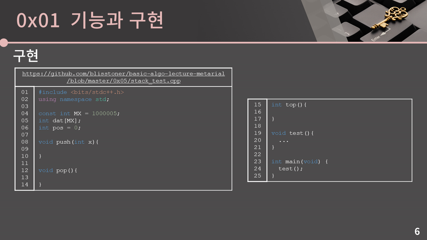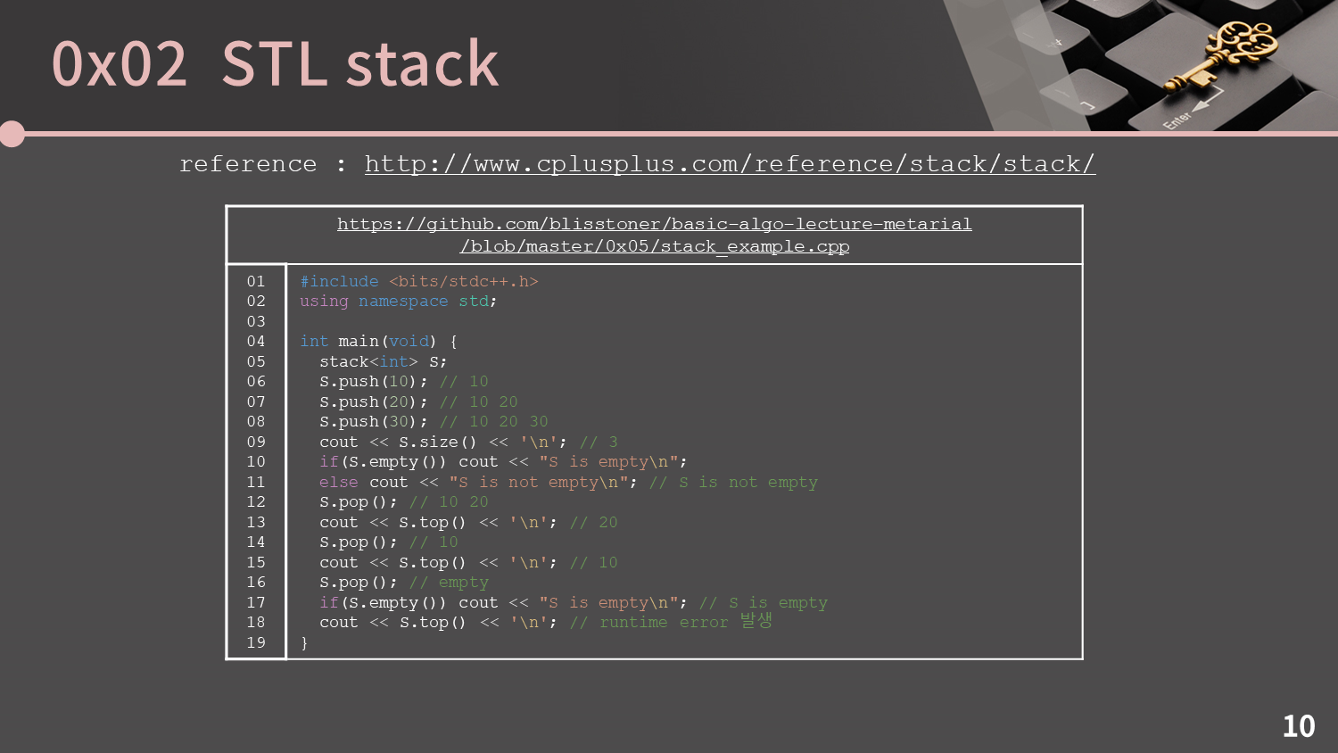 이렇게 push, pop, top 함수가 모두 한 줄로 구현이 되는 것을 볼 수 있습니다. 전체 코드는 github 링크에서 확인할 수 있습니다.