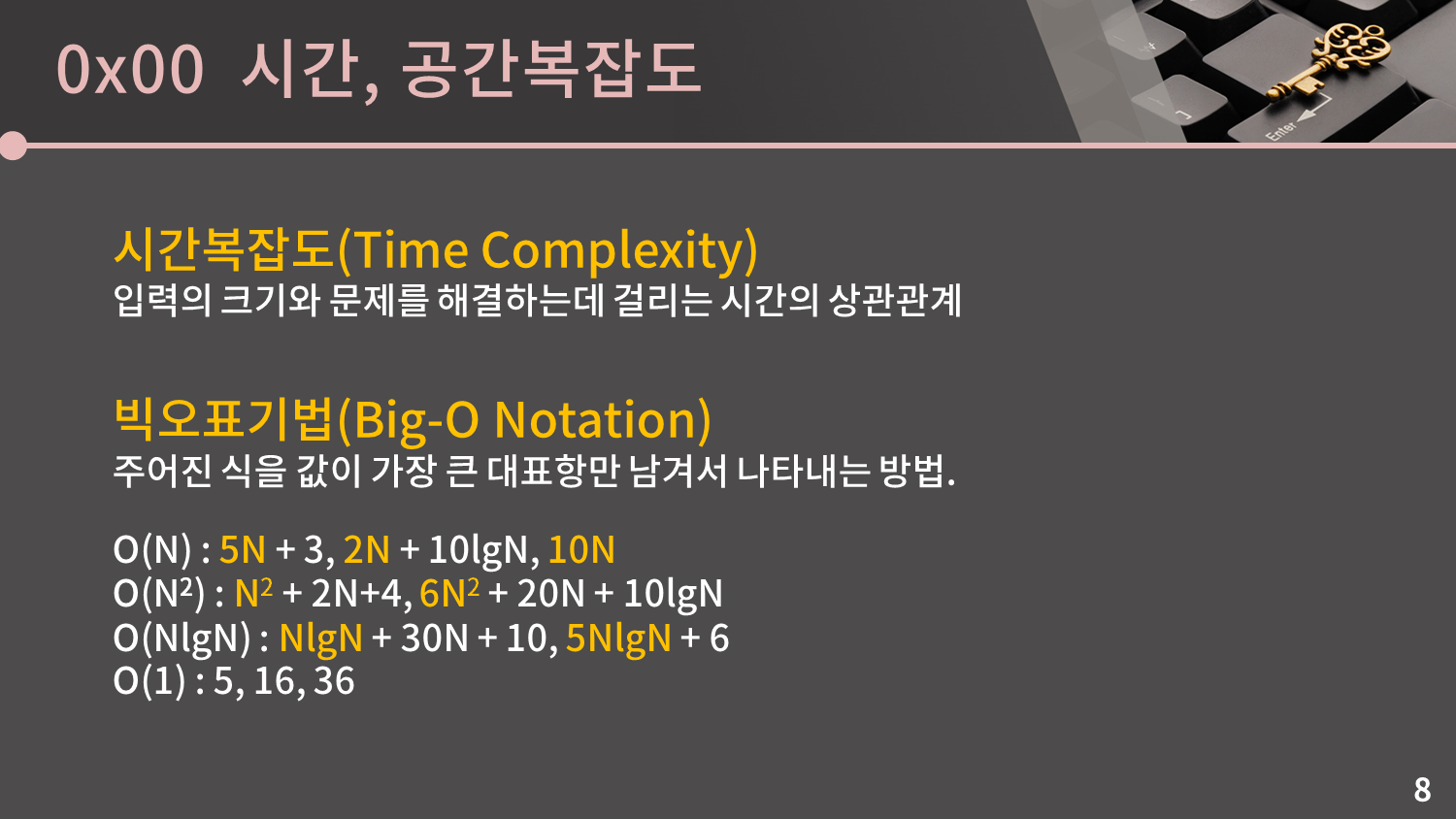 이렇게 다양한 문제들에 대한 시간복잡도를 알아봤습니다. 일단 이정도만 익혀둬도 앞으로 강의 중에 시간복잡도를 언급했을 때 큰 어려움없이 넘어갈 수 있을 것입니다.
