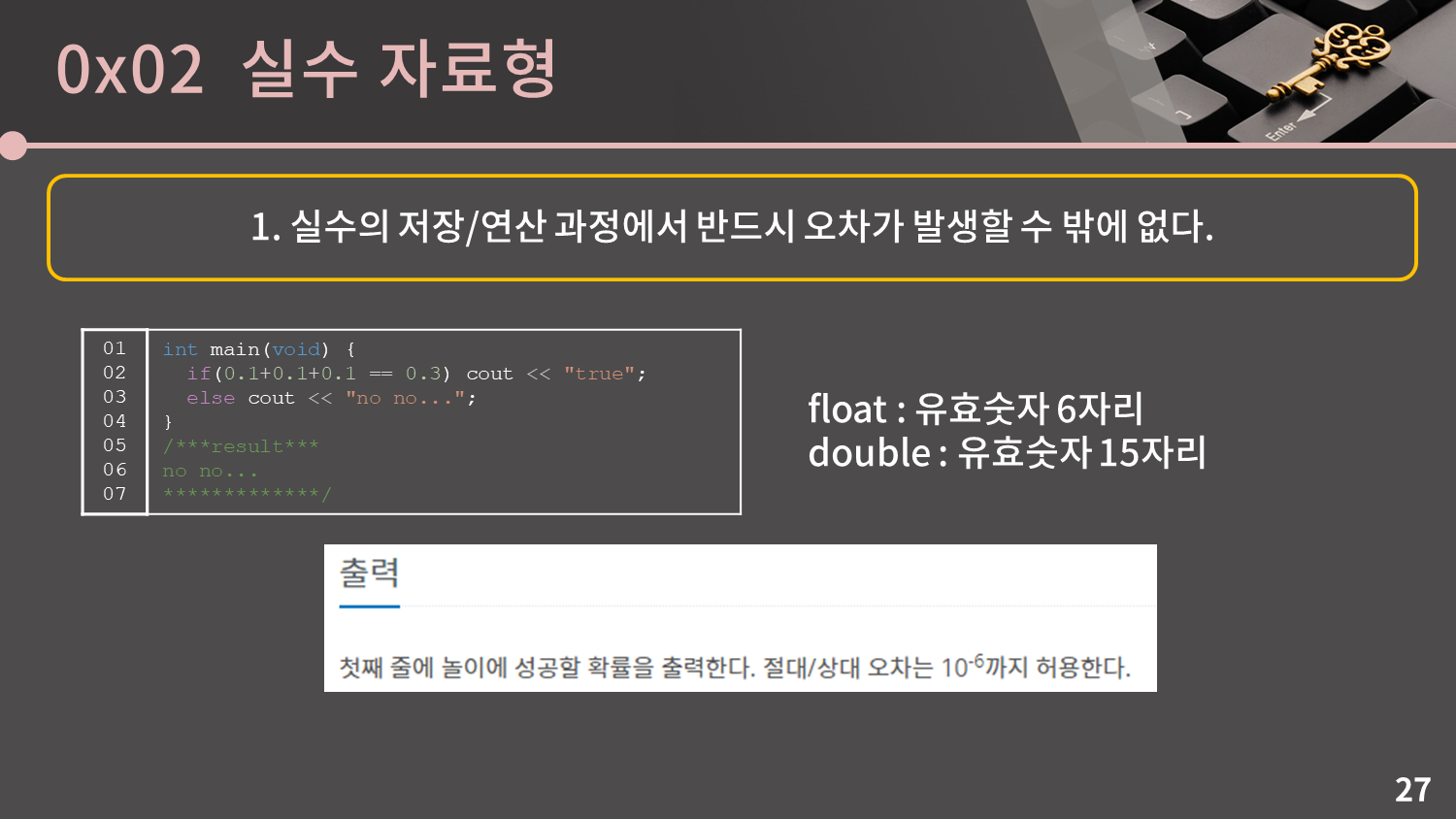 정수 자료형의 개념이 어려우셨나요? 실수 자료형은 더 어렵습니다ㅠㅠ 꺼이꺼이..