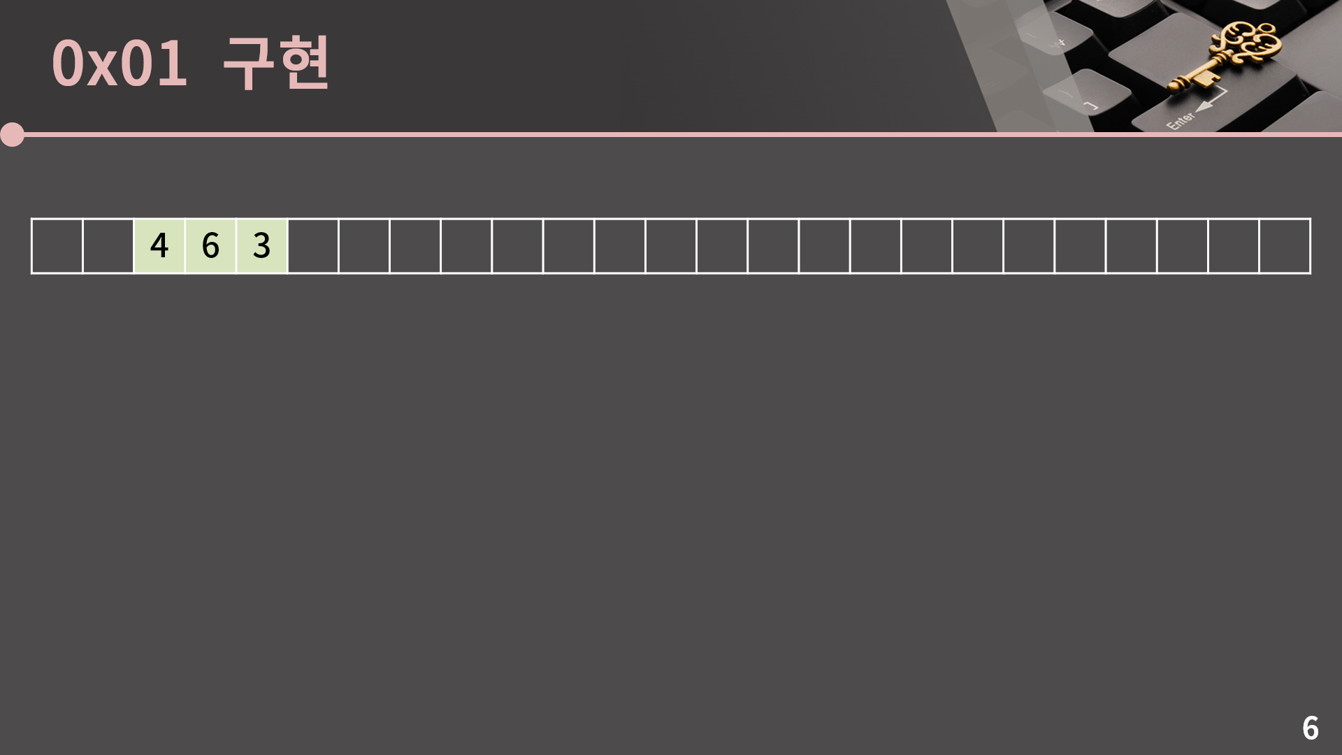 그러면 저 4, 6, 3이라는 값을 옮겨써야 합니다. 그리고 원래 배열의 길이가 N이었다고 하면 이거 자체가 이미 O(N)입니다. 그러면 예를 들어서 마치 vector의 push_back 마냥 insert를 맨 뒤에 한다고 하면 이건 O(1)이기를 기대하는데 배열이 꽉 찼을 경우에는 당장 새 배열을 잡고 데이터를 옮기는 것 만으로 O(N)이 필요합니다. 이건 전혀 원치 않는 상황입니다. 그러면 지금 상황에서는 크기를 1씩 늘리다보니 매번 insert를 할 때 마다 확장이 발생해서 이런거니까 1씩 말고 한 3씩 늘린다고 하면 해결이 가능할까요? 아쉽게도 그렇지 않습니다.