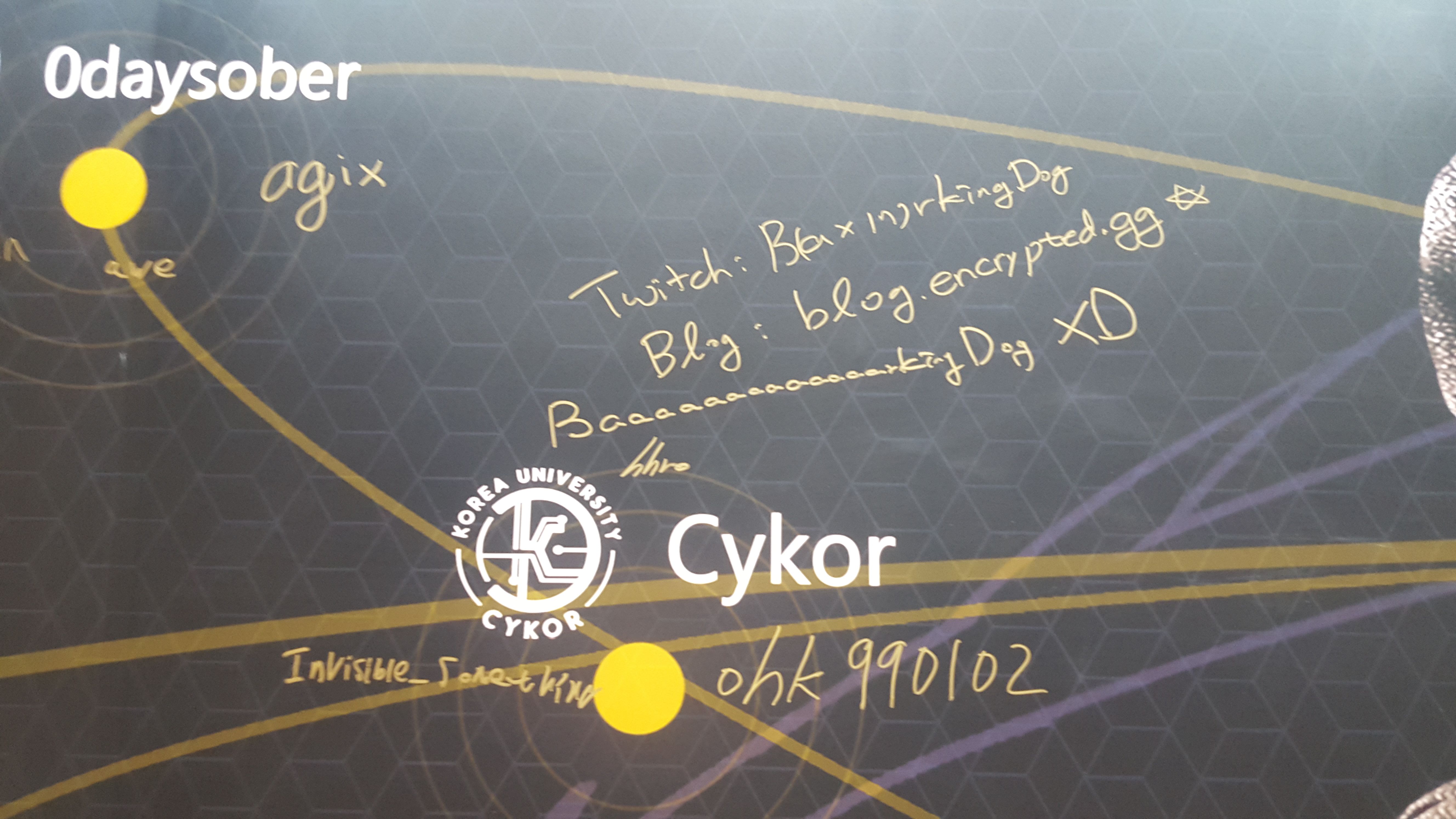 32시간동안 정말 고통받았지만 풀어낼 때의 쾌감은 정말 뭐라고 설명을 할 수가 없습니다. 함께한 Cykor 팀원들, mathboy07님, 5unkn0wn님 고생 많으셨습니다!! 이 맛에 CTF 한드아아아악