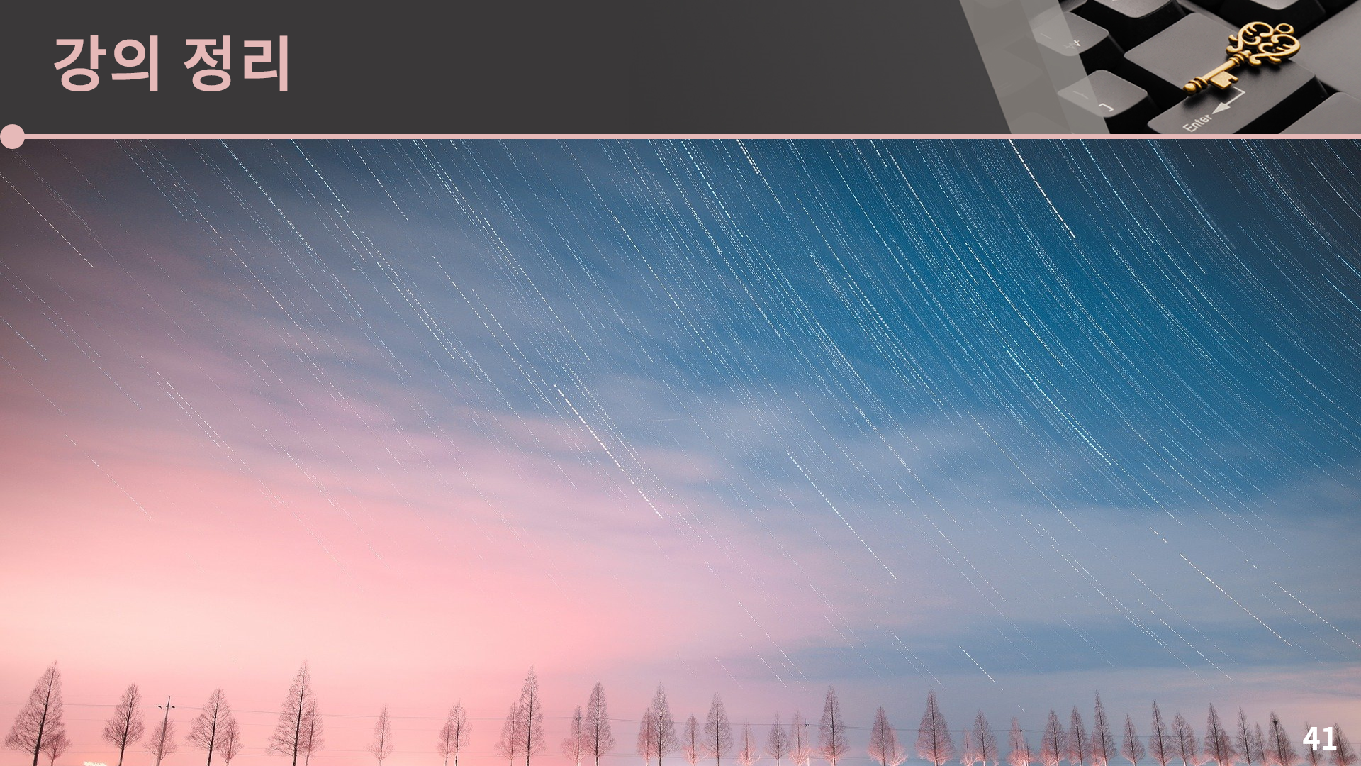 이렇게 이진 검색 트리 강의도 끝이 났습니다. 아주 간단하게 요약을 하자면 이진 검색 트리에서는 원소가 크기 순으로 저장되어 있고 삽입, 삭제, 검색 등이 전부 O(lg N)에 동작합니다. 그렇기 때문에 일단 N이 커서 O(N^2)은 통과가 안될 상황이고 원소의 대소 관계가 필요한데 삽입 혹은 삭제가 빈번하다면 이진 검색 트리가 유용하게 쓰일 수 있습니다. 꼭 대소 관계가 아니더라도 그냥 key로 value를 빠르게 찾거나, 원소의 삽입/검색/삭제만 빠르게 처리를 해주어야 할 경우라고 해도 unordered_set/unordered_map을 쓰듯이 set/map을 편하게 쓸 수 있습니다. 그럼 강의를 여기서 마치겠습니다.