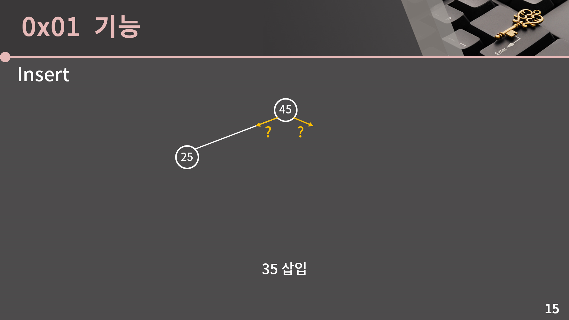 다음으로 25를 삽입할건데 25는 45를 기준으로 왼쪽에 있을까요? 오른쪽에 있을까요?
