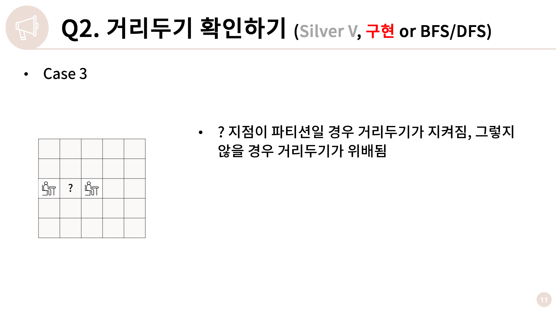 Case 1과 같은 배치가 나오면 바로 거리두기가 위배되었음을 확인 가능합니다.